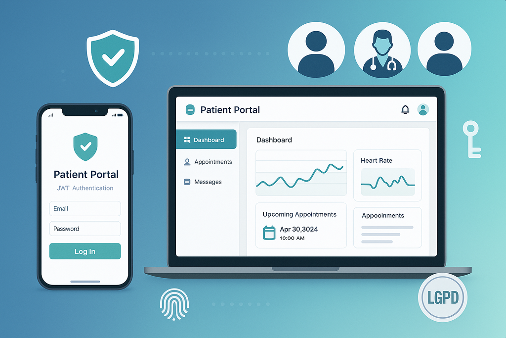 Plataforma robusta com autenticação JWT, múltiplos tipos de usuários (Paciente, Médico, Técnico, Financeiro, Admin) e área dedicada para pacientes com dashboard, gerenciamento de exames e reagendamentos online. Inclui histórico de auditoria e timeline visual.